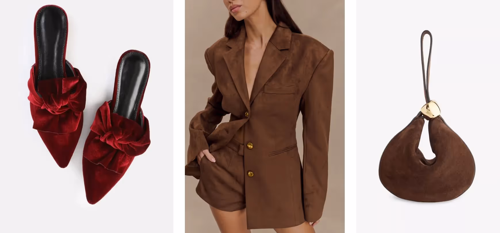 Another trend that is having its “revival moment” is suede. Suede is a texture that we often see during the colder months of the year because it’s a very winter friendly fabric. From the classic chocolate brown color to shades such as olive green and burgundy, we are seeing everyone embrace this trend their own way. Reasons to try suede this season? It radiates cozy sophistication and luxury that feels both fresh and effortless. Suede delivers the perfect mix of comfort and style.